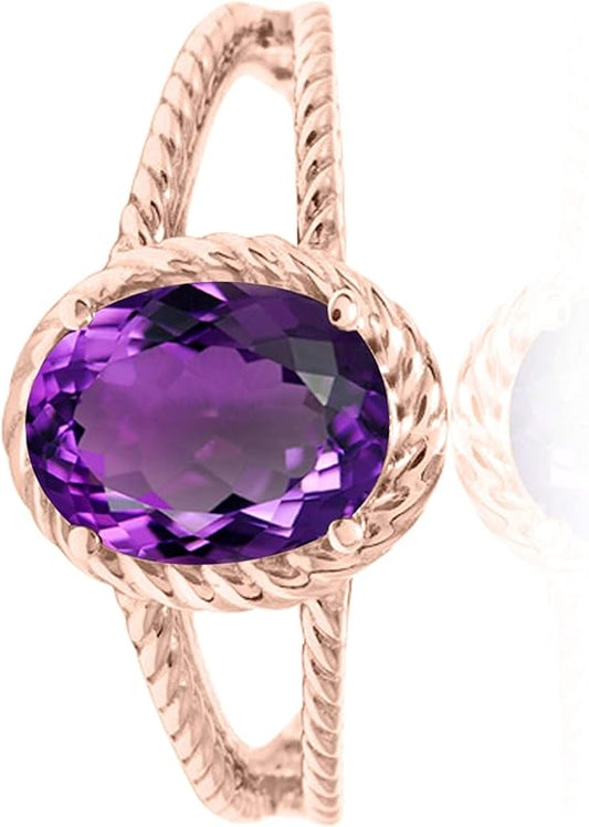 Aonejewelry 1.25 Carat Oval Shape Amethyst Ring In 10K Solid Rose, White & Yellow Gold, Best Valentinesday Gift