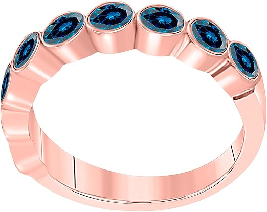 Aonejewelry 1.00 Carat Blue Diamond Bezel Set Engagement Wedding Band In 10K Solid Rose, White & Yellow Gold, Best Valentinesday Gift