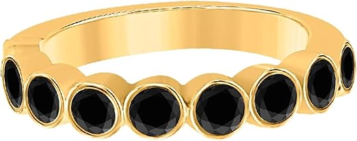 Aonejewelry Black Diamond Engagement Wedding Bezel Set Band In 10K Solid Rose, White & Yellow Gold, Best Valentinesday Gift