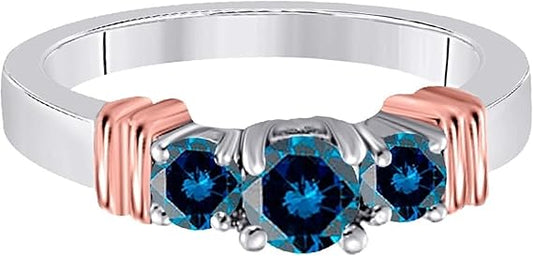 Blue Diamond 1.00 Carat Three Stone Two Tone Engagement Ring In 10K White & Rose Gold, Best Valentinesday Gift