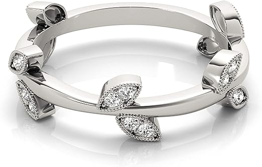 Aonejewelry 0.15 Carat Diamond Leaf Shape Wedding Band In 10K Solid Rose, White & Yellow Gold, Best Valentinesday Gift
