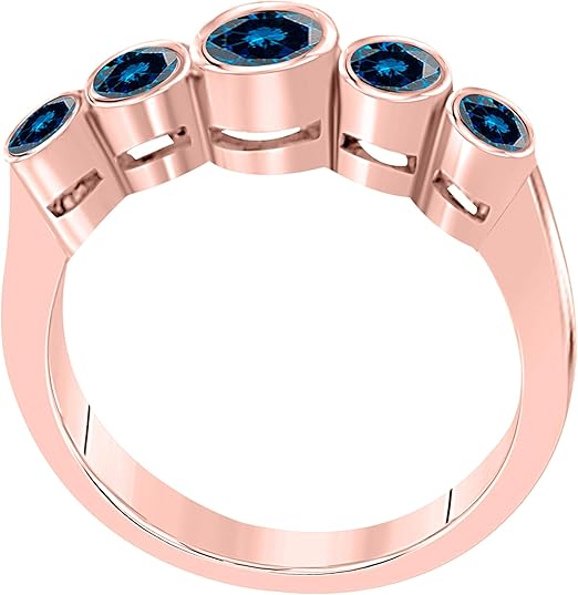 Aonejewelry Blue Diamond Five Stone Bezel Set 1.00 Carat Engagement Ring In 14K Rose, White & Yellow Gold, Best Valentinesday Gift