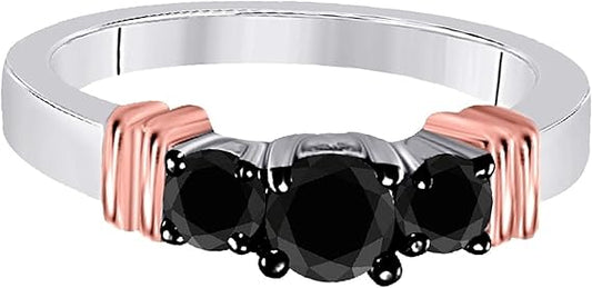 1.00 Carat Black Diamond Three Stone Two Tone Engagement Ring In 10K Solid White & Rose Gold, Best Valentinesday Gift