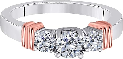Aonejewelry 1.00 Carat Two Tone Three Stone Engagement Diamond Ring In 10K Solid Rose & White Gold, Best Valentinesday Gift