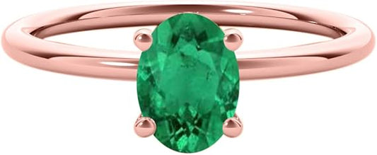 0.85 Cttw Natural Oval Shape Emerald Gemstone Ring made in 10K Rose, White, Yellow Gold