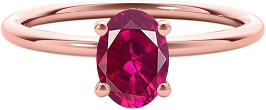 0.85 Cttw Lab-Created Oval Shape Ruby Gemstone Ring made in 10K Rose, White, Yellow Gold