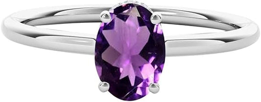 1.45 Cttw Oval Shape Amethyst And White Diamond (H-I, I1-I2) made in 10K Rose, White, Yellow Gold