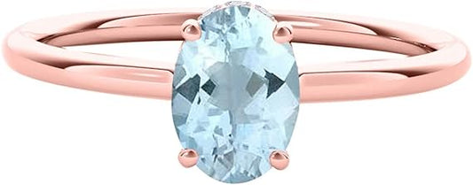 1.45 Cttw Oval Shape Aquamarine And White Diamond (H-I, I1-I2) Ring made in 10K Rose, White, Yellow Gold