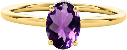 10K Yellow Gold Oval Shape Amethyst & Diamond Gemstone Ring 1.55 Carat, Best Valentinesday Gift