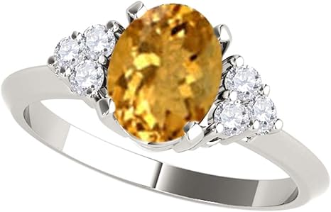 10K White Gold 1.55 Carat Oval Shape Citrine & Diamond Gemstone Ring, Best Valentinesday Gift
