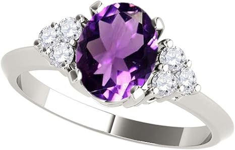 10K White Gold Oval Shape Amethyst & Diamond Gemstone Ring 1.55 Carat, Best Valentinesday Gift