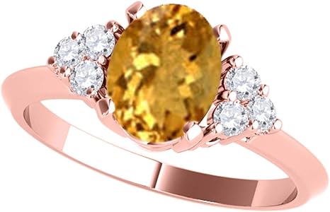 10K Rose Gold 1.55 Carat Oval Shape Citrine & Diamond Gemstone Ring, Best Valentinesday Gift