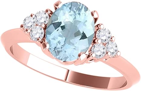 1.55 Carat Aquamarine & Diamond Gemstone Ring In 10K Solid Rose Gold, Best Valentinesday Gift