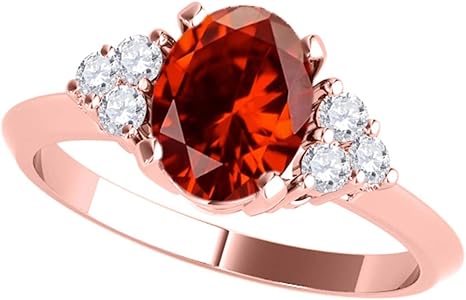 1.55 Carat Garnet & White Diamond Gemstone Ring In 10K Rose Solid Gold, Best Valentinesday Gift