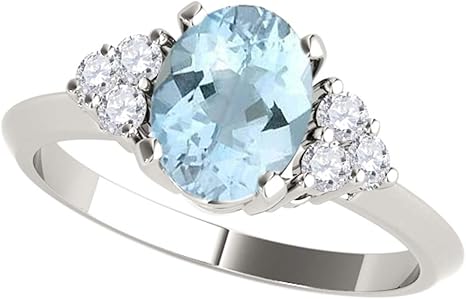 1.55 Carat Aquamarine & Diamond Gemstone Ring In 10K Solid White Gold, Best Valentinesday Gift