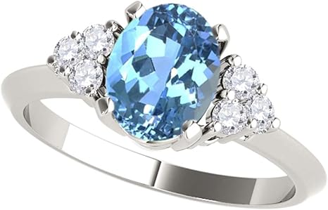 1.55 Carat Blue Topaz & Diamond 10K White Gold Gemstone Ring For Women's, Best Valentinesday Gift
