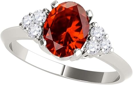 1.55 Carat Garnet & White Diamond Gemstone Ring In 10K White Solid Gold, Best Valentinesday Gift