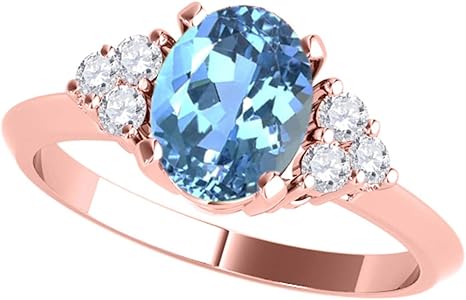 1.55 Carat Blue Topaz & Diamond 10K Rose Gold Gemstone Ring For Women's, Best Valentinesday Gift
