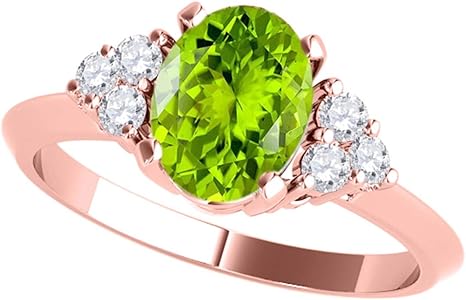 1.55 Carat 10K Rose Gold Peridot & White Diamond Gemstone/Seven Stone Ring, Best Valentinesday Gift