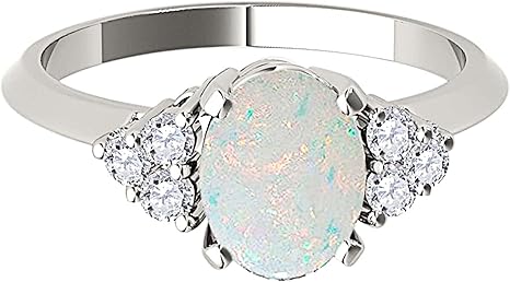 Opal Gemstone Engagement Rings for Women |10K White gold 1.53 carat Gray Color Round Cut Prong Setting Genuine Diamond Wedding Jewelry Collection