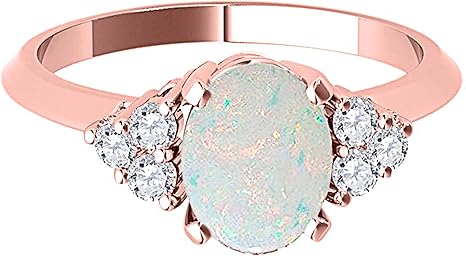 Opal Gemstone Engagement Rings for Women |10K Rose gold 1.53 carat Gray Color Round Cut Prong Setting Genuine Diamond Wedding Jewelry