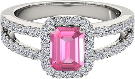 10 Rose, White, Yellow Gold Ring With 2 Carat Emerald Cut Natural Pink Topaz And White Diamonds (I-J, I1-I2), Best Valentinesday Gift