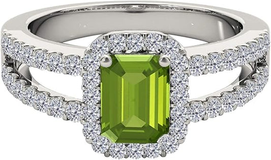 2 Cttw (I-J, I1-I2 Emerald Cut Natural Peridot And Diamond Ring In 10K Gold (Rose, White, Yellow), Best Valentinesday Gift