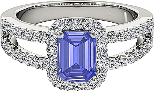 Spilt Shank Style 10k Solid Rose Gold Diamond Ring With 2.00 Cttw Emerald Cut Natural Tanzanite And Diamonds By Aone Jewelry (I-J, I1-I2), Best Valentinesday Gift