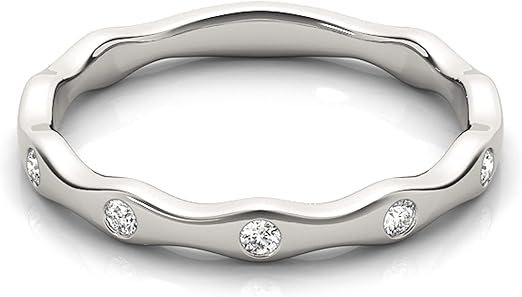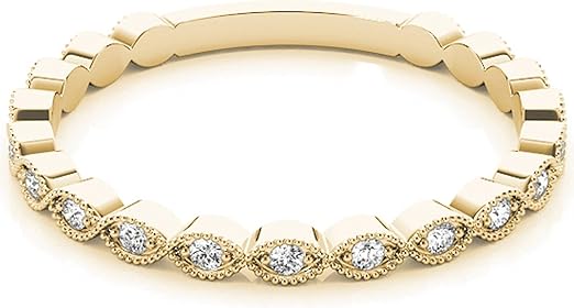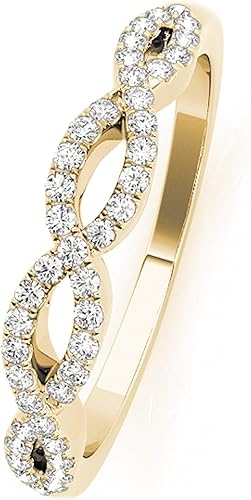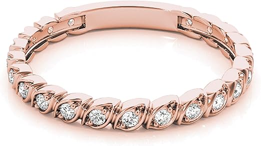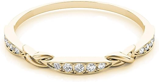 AoneJewelry 1/4 Carat 10K Diamond Swirl Stackable Wedding Band In Solid Rose, White & Yellow Gold, Best Valentinesday Gift