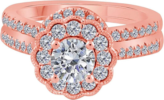 Aonejewelry 10K Rose, White & Yellow Gold 3/4 Carat Engagement Bridal Set Ring, Best Valentinesday Gift