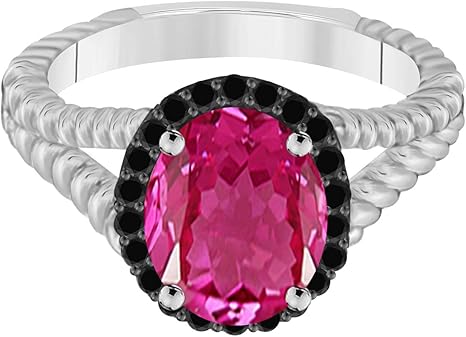 10K Rose, White & Yellow Gold Pink Topaz Black Diamond Ring, Best Valentinesday Gift