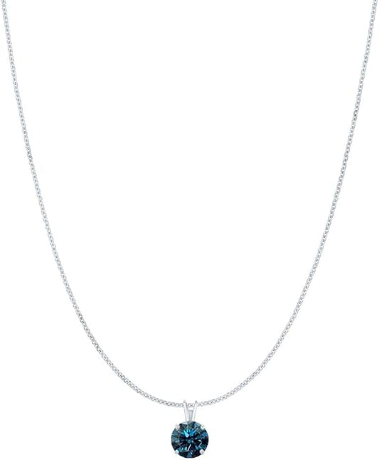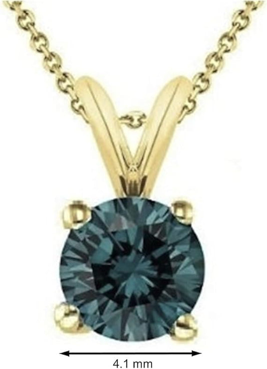 AoneJewelry 0.50 CT Round Blue Diamond Solitaire Pendant in 14K Yellow Gold, Best Valentinesday Gift