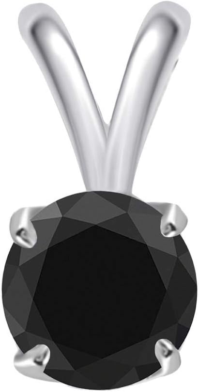AoneJewelry 0.50 CT Round Black Diamond Solitaire Pendant In 10K White Gold With 18" Box Chain, Best Valentinesday Gift