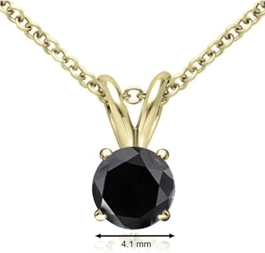 AoneJewelry 0.50 CT Round Black Diamond Solitaire Pendant in 14K Yellow Gold, Best Valentinesday Gift