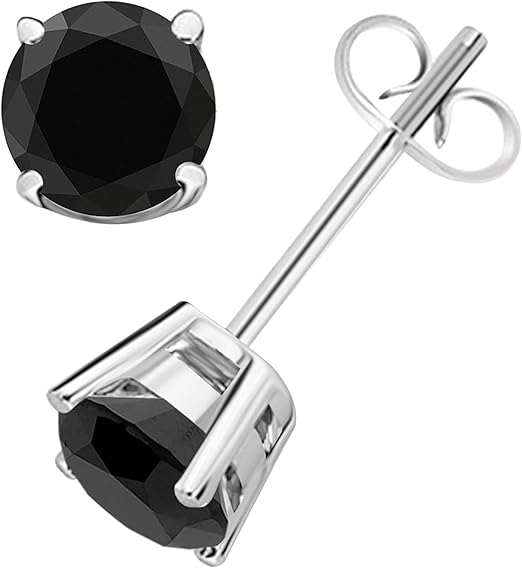 AoneJewelry1.00 CaratsW Round Black Diamond Solitaire Stud Earrings for Women In 14K White Gold Prong-Setting Gemstone Wedding Jewelry Collection