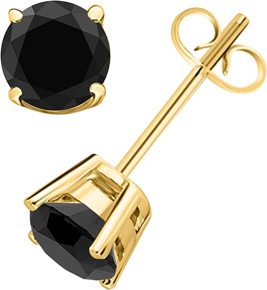 AoneJewelry1.00 CaratsW Round Black Diamond Solitaire Stud Earrings for Women In 14K Yellow Gold Prong-Setting Gemstone Wedding Jewelry Collection