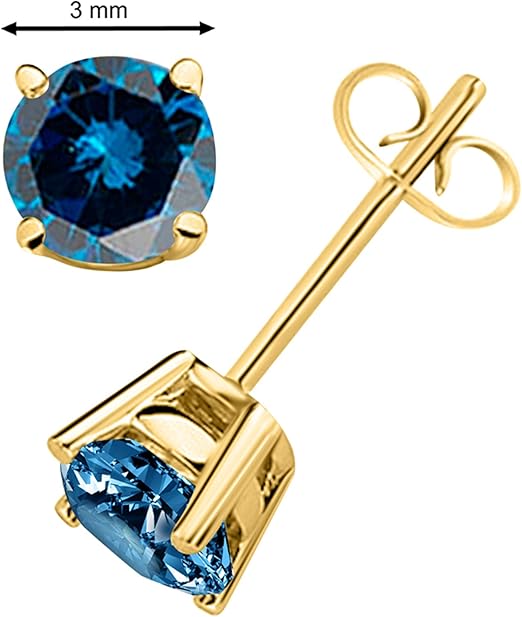 AoneJewelry0.20 CaratsW Round Blue Diamond Solitaire Stud Earrings for Women In 14K Yellow Gold Prong-Setting Gemstone Wedding Jewelry Collection