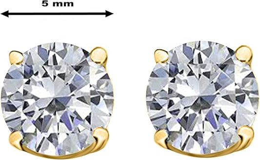 AoneJewelry0.20 CaratsW Round White Diamond Solitaire Stud Earrings for Women In 14K Yellow Gold Prong-Setting Gemstone Wedding Jewelry Collection