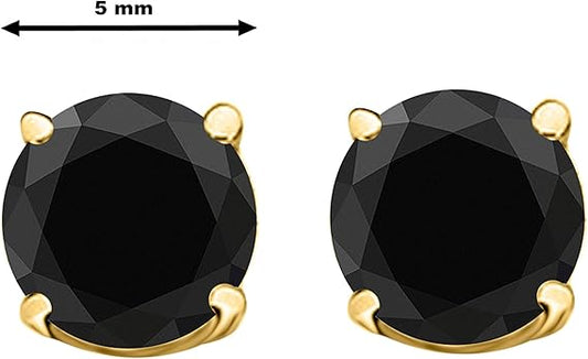 AoneJewelry0.20 CaratsW Round Black Diamond Solitaire Stud Earrings for Women In 14K Yellow Gold Prong-Setting Gemstone Wedding Jewelry Collection
