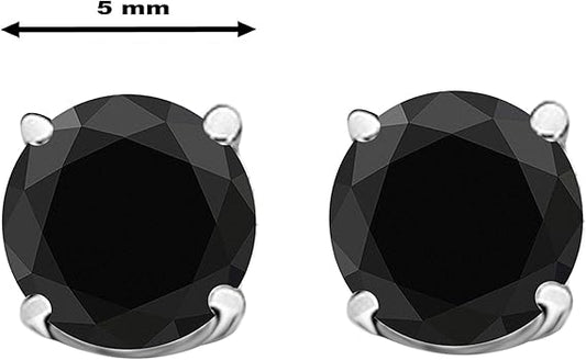 AoneJewelry0.20 CaratsW Round Black Diamond Solitaire Stud Earrings for Women In 14K White Gold Prong-Setting Gemstone Wedding Jewelry Collection