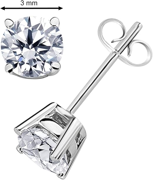 AoneJewelry0.20 CaratsW Round White Diamond Solitaire Stud Earrings for Women In 14K White Gold Prong-Setting Gemstone Wedding Jewelry Collection