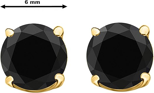 AoneJewelry2.00 CaratsW Round Black Diamond Solitaire Stud Earrings for Women In 14K Yellow Gold Prong-Setting Gemstone Wedding Jewelry Collection