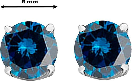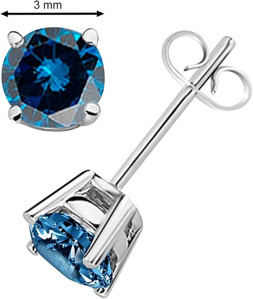 AoneJewelry0.20 CaratsW Round Blue Diamond Solitaire Stud Earrings for Women In 14K White Gold Prong-Setting Gemstone Wedding Jewelry Collection