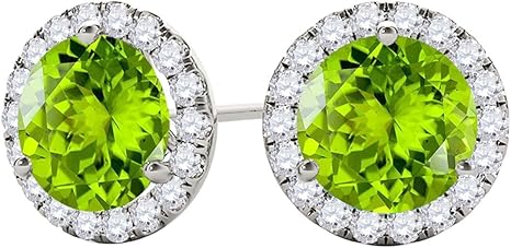 Gemstone Diamond Studs Earrings For Women 1.95 Carat 6MM Natural Round Peridot With Natural Round Diamond Studs Push Back Earrings For Ladies In 10K Solid Rose White Yellow Gold Best Jewelry Gift For Her By Aone Jewelry