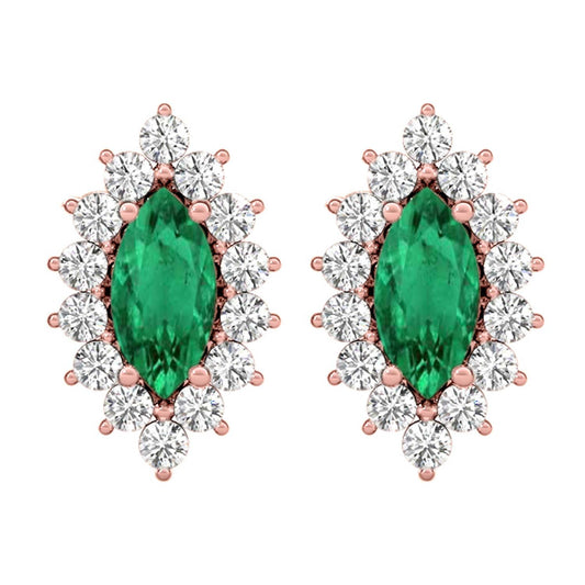 Gemstone Diamond Studs Earrings For Women 1.0 Carat 6x3MM Lab Created Center Marquise Emerald With Natural Round White Diamond Studs Push Back Earrings For Ladies In 10K Solid Rose White Yellow Gold Best Jewelry Gift For Her By Aone Jewelry
