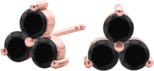 Black Diamond Earring For Women 0.25 To 1.5 Carat Brilliant Round 3 Stone Natural Black Diamond Stud In 14K Solid Rose White Yellow Gold By Aone Jewelry