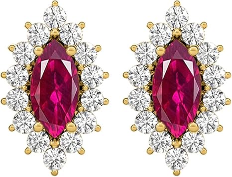 Gemstone Diamond Studs Earrings For Women 1.0 Carat 6x3MM Lab Created Center Marquise Ruby With Natural Round White Diamond Studs Push Back Earrings For Ladies In 10K Solid Rose White Yellow Gold Best Jewelry Gift For Her By Aone Jewelry
