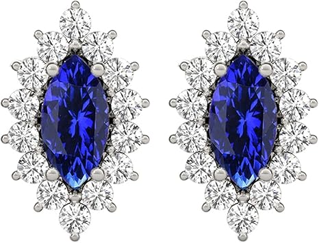 Gemstone Diamond Studs Earrings For Women 1.0 Carat 6x3MM Lab Created Center Marquise Tanzanite With Natural Round White Diamond Studs Push Back Earrings For Ladies In 10K Solid Rose White Yellow Gold Best Jewelry Gift For Her By Aone Jewelry