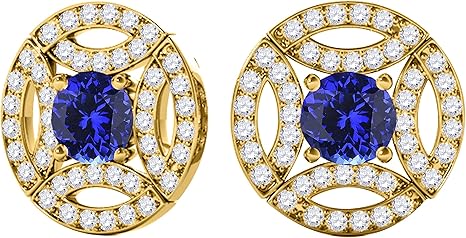 Gemstone Diamond Studs Earrings For Women 1.50 Carat 5MM Round Tanzanite With Natural Round White Diamond Studs Push Back Earrings For Ladies In 10K Solid Rose White Yellow Gold Best Jewelry Gift For Her By Aone Jewelry