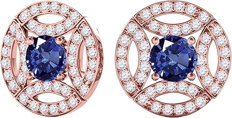 Gemstone Diamond Studs Earrings For Women 1.50 Carat 5MM Round Sapphire With Natural Round White Diamond Studs Push Back Earrings For Ladies In 10K Solid Rose White Yellow Gold Best Jewelry Gift For Her By Aone Jewelry